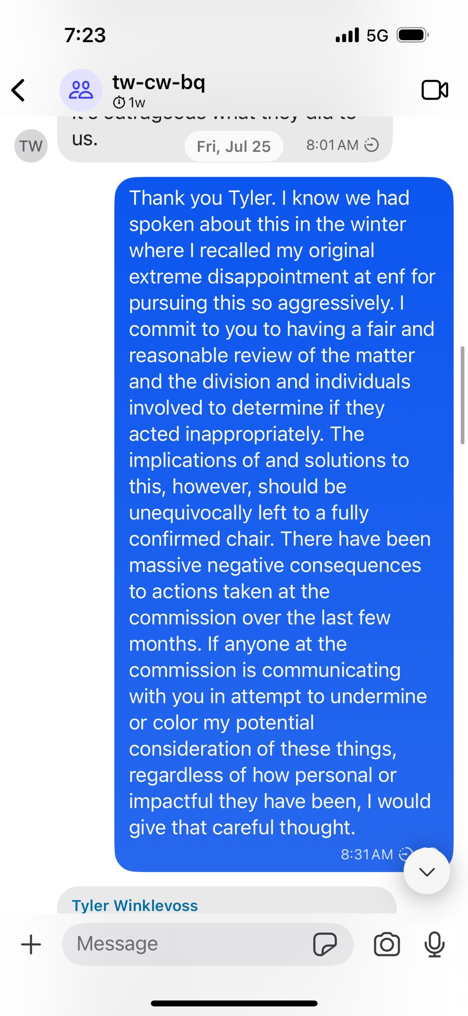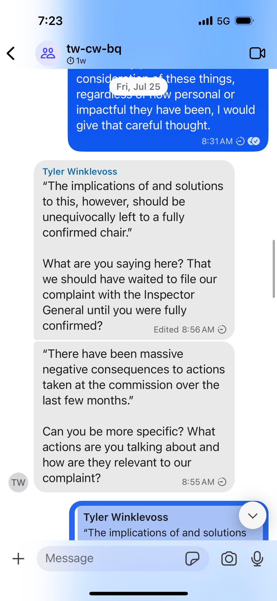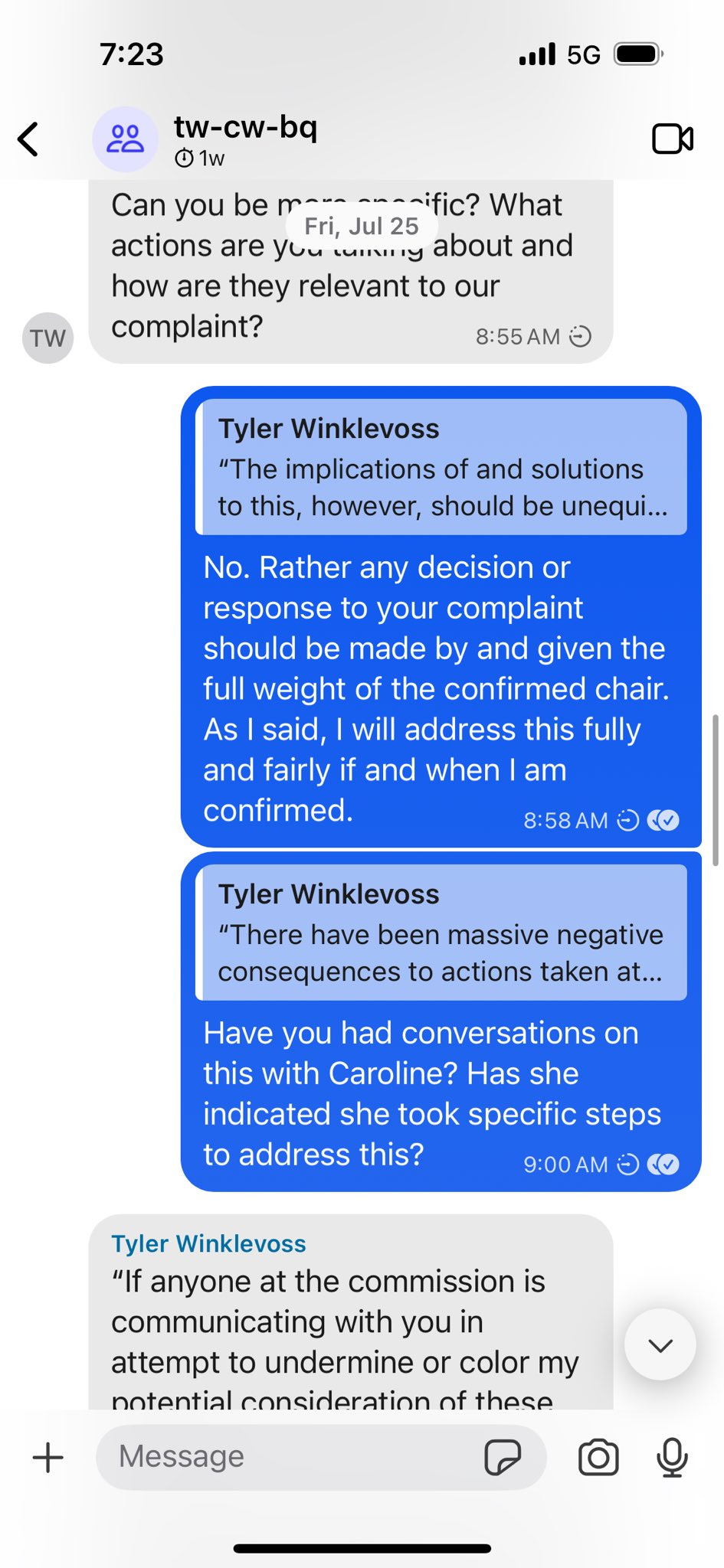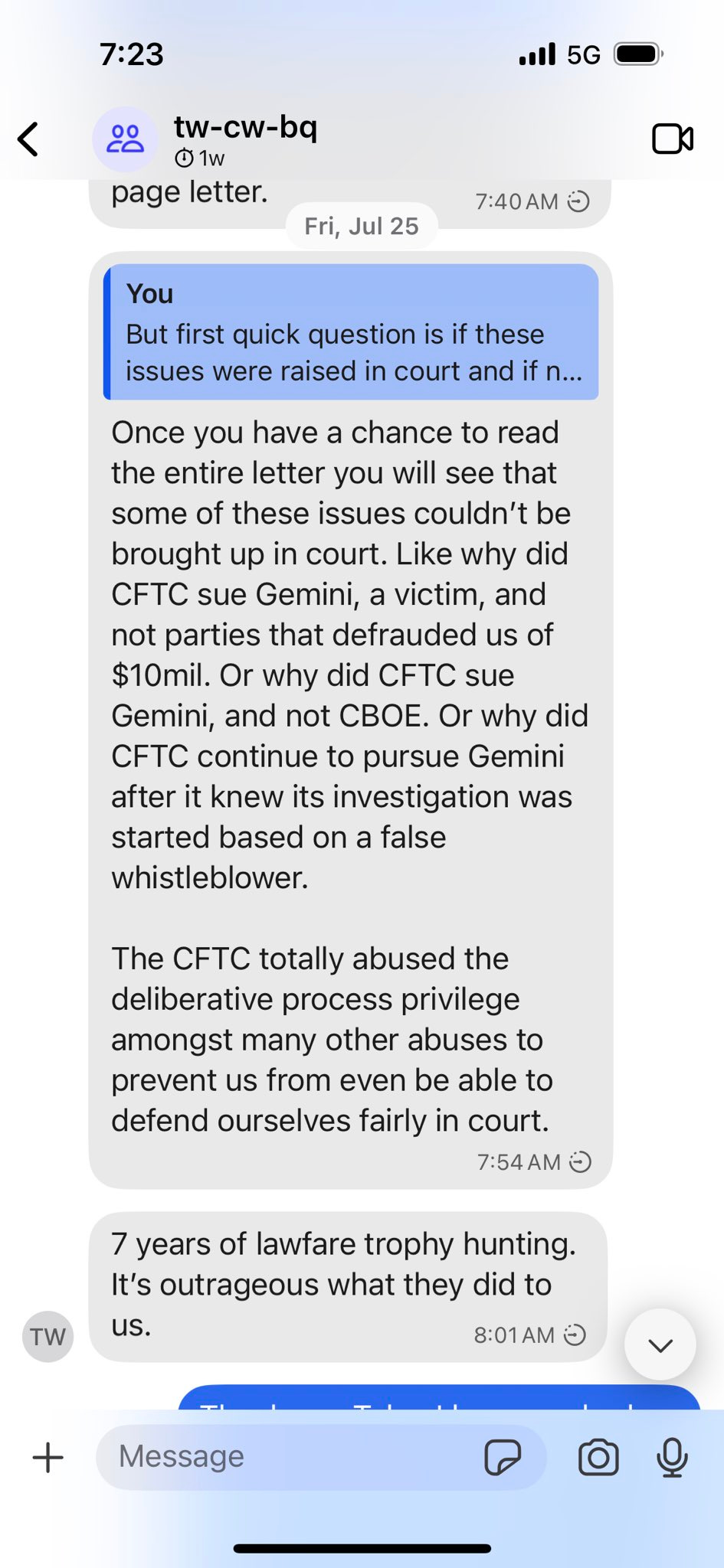I’ve never been inclined to release private messages. But in light of my support for the President and belief that he might have been misled, I’ve posted here the messages that include the questions Tyler Winklevoss asked me pertaining to their prior litigation with the CFTC.