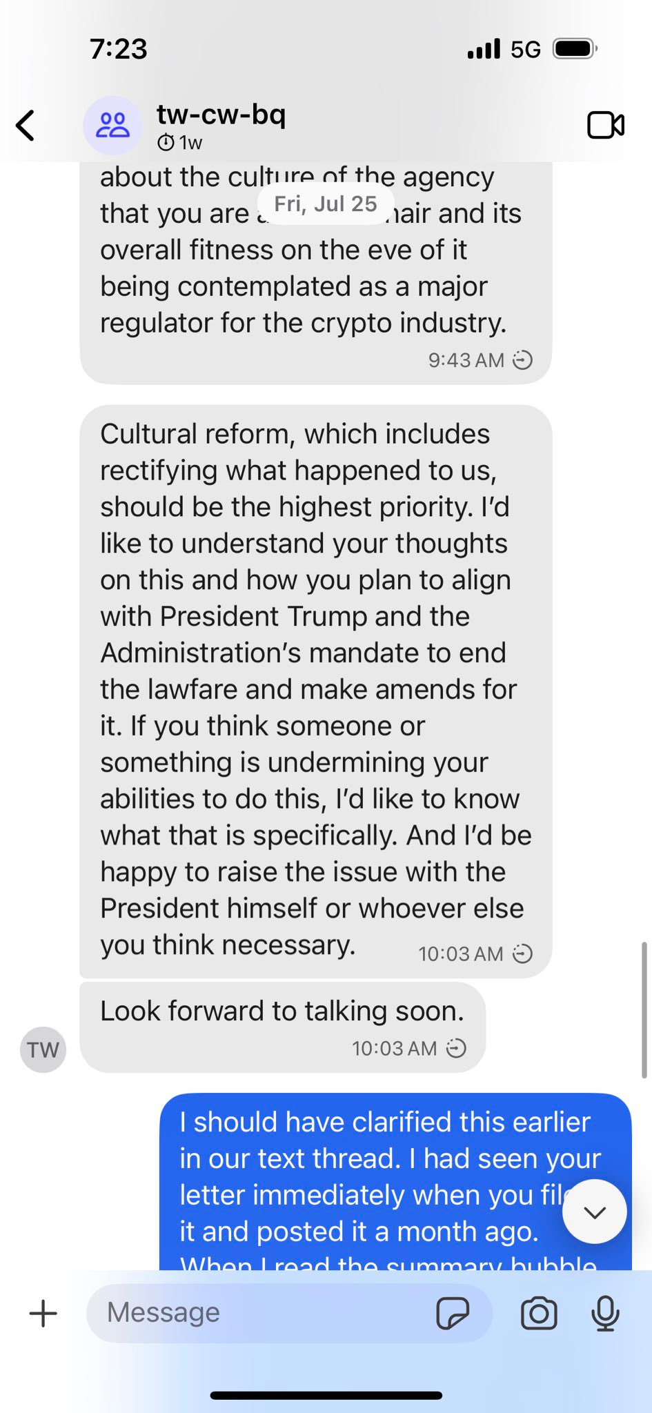 I believe these texts make it clear what they were after from me, and what I refused to promise. It’s my understanding that after this exchange they contacted the President and asked that my confirmation be paused for reasons other than what is reflected in these texts.